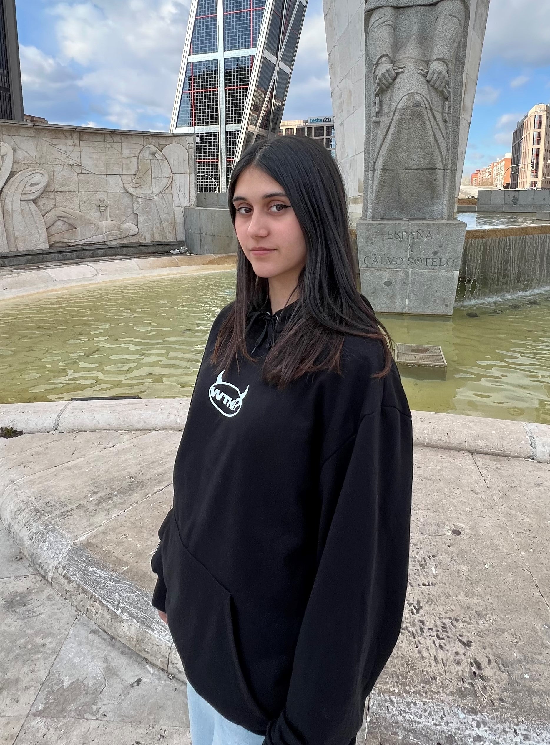 Sudadera con capucha negra WTHI?